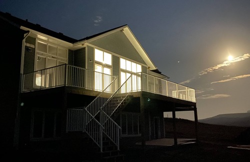 This beautiful new home boasts the best view outside of Waterton National park and is just over 10 minutes to the entrance of this natural treasure. Close to other Southern Alberta attractions including Cardston, Fort Macleod with the RCMP Mounted Police show and fort, and the Head Smashed In Buffalo Jump as well as Castle Mountain ski resort. The home is on a lake-front lot, the first in the neighborhood at the new Payne Lake development outside of Mountain View AB. Sleeps 8. Please inquire about any additional visitors for approval and info on fees.