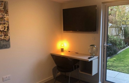 Outhouse studio with fully fitted kitchen, separate toilet with large walk in shower, king size sofa-bed & dedicated work area in a residential street. Kitchen has fitted dishwasher and fridge with double oven and electric hob. Large modern space completely private in a very central location. Free wifi access, black out blinds and side access with keybox. 10 mins to Putney Bridge Tube. 5 mins to River Thames, Putney Common and Putney Station SW Railway with quick access to Waterloo (19 mins).