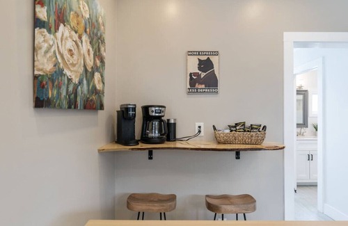 Enjoy your morning beverage of choice at the coffee and tea bar! A Keurig and a 12 cup coffee maker are available; we provide a starter set of ground coffee, k-cups, tea, creamer, sugar and stevia!