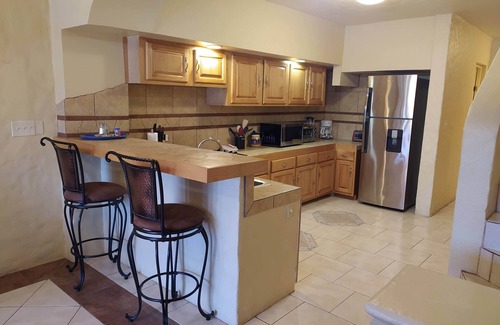 Beautiful spacious 3 BR/2.5 BA in central location, sleeps 8. Easy walking distance to beach, San Carlos marina, great restaurants, brew pub, supermarkets, taquerías and more. Enjoy breathtaking views and sunsets over San Carlos Marina and Tetakawi Mountain from two private patios. Full service kitchen, bar counter with open floor plan to main living space. Private washer & dryer. Free wifi, SmartTV with Roku, linens & bath towels, heating & cooling and electric fireplace for cozy winter evenings. Communal pool.