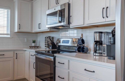 • Kitchenette: Equipped with a full-size fridge, oven, microwave, and dishwasher.