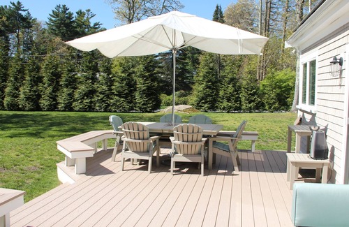 Bright, modern & quiet Marion Guest House in beautiful Piney Point walking distance to ocean with open floor plan and spacious deck perfect for spending quality time together! Accommodates 2 to 6 (can stretch to 8 with trundle beds, best for kids.) One private first floor master bedroom plus OPEN sleeping LOFT upstairs (double bed on one side and two XL twins with twin trundles/platform beds on wheels underneath on other side). Great for walking and biking!