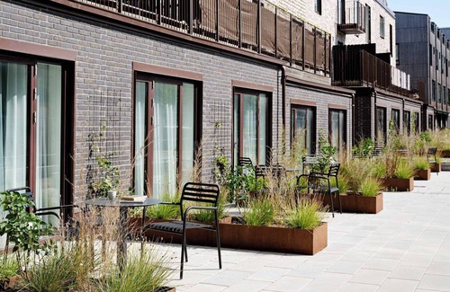 We are Flora, an apartment hotel located in central Amager, Copenhagen. Our cozy apartments in a newly constructed complex feature outdoor terraces adorned with lush greenery. Designed in a serene Scandinavian style, the apartments draw inspiration from the soft colors of Danish coastal nature. Located within walking distance of the city's largest beach and just a 10-minute metro ride from the city center, Flora is the perfect base for exploring Copenhagen or enjoying a refreshing plunge in Scandinavian waters.
