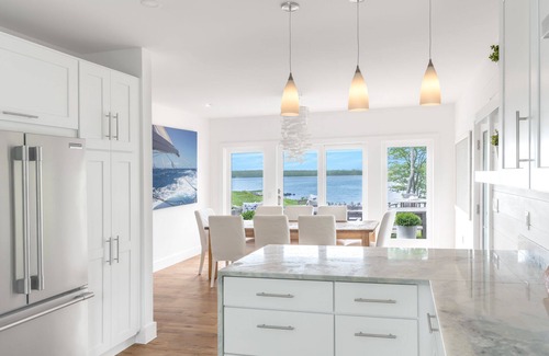 The Brooklin House is designed to bring family, friends, and loved ones together in an unparalleled environment built to maximize the experience of a stunning location with breathtaking views of Herrick Bay and beyond. Offering four bedrooms, and two and a half baths the property features over two acres of unobstructed views and bay front access - your own private estate to enjoy countless home luxury amenities and activities. The house is light and airy and exquisitely decorated to echo the charm of this historic maritime community. Featuring stunning bay views from all water-side rooms there are expansive living areas with 2 fireplaces, a fully appointed chef’s kitchen and dining room and a large basement games and entertainment room. The home provides all the high-end amenities you will need. (Note: if additional guest space is needed a penthouse suite is available for an additional cost. Please see our VRBO listing “Brooklin House on Herrick Bay with Penthouse” and book through that site. The penthouse is not rented separately from the main house so if you do not need the extra accommodation, it will be empty during your stay.)