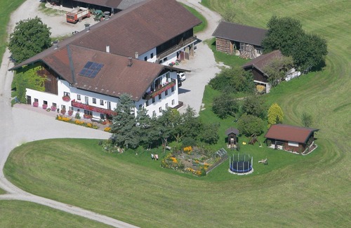 In a beautiful spot near Chiemsee you will find a holiday landscape that can inspire you at all times. Our fully managed farm is surrounded by forests and meadows. On our small lake, only about 300 meters from the farm, you can leave your everyday stress behind in a peaceful and idyllic setting. Young and old alike can enjoy their vacation here. The beautifully furnished apartment with balcony gives you a home feeling. With toys and books in the apartment, small animals, small vehicles, the beautiful garden with the arbor and playground, you are guaranteed not to get bored. You can grill and make a bonfire on the farm and at the lake. Included
