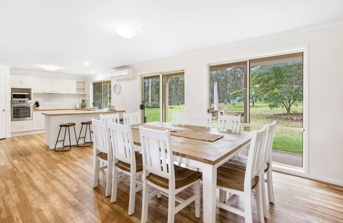 ‘Bundara’ is one of the most stunning country retreats offered in the beautiful Hunter Valley. Surrounded by bushland you are guaranteed to see native birds & wildlife. Situated 20min from Cessnock, Wollombi & Pokolbin you are perfectly situated to enjoy the property, shops, wineries, restaurants & the many attractions of the Hunter Valley. If you love the idea of waking up to kookaburra’s, relaxing around a firepit & enjoying exploring the area, then you have found the perfect property.