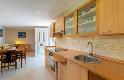 The detached bungalow built in 2019 and is furnished in a modern and functional style. The property is located in a residential area, on the outskirts. Also due to the view over a panorama from the property and its quiet and sunny location the domicile is popular. This property is a romantic accomodation. Available for your exclusive use: barbecue facilities, terrace and garden furniture. The barbecue is available to all three apartments, the rest are available for independent useLocationCres. The bungalow is located on a enclosed garden plot. The landlord lives permanently in a separate building on the property. Access is via a side road (asphalted). Parking is available on the property. Specialair conditioning.Facilities: internet access (WLAN). Dogsnot allowed. DistancesShopping 70 m, restaurant 50 m, town center 50 m. For a relaxing holiday, a car is not necessary. The nearest public transport stop is 70 m away. Cres: cinema 300 m, discotheque, doctor each 500 m. pharmacy 60 m and bank 70 m. Rijeka: airport 45 km and railway station 75 km. Children's playground 200 m. In summer: Bathing possibility 260 m in Cres. DivisionBungalow, 1 floor, 1 room, 30 sqm, in total 2 beds (including 2 additional beds). RoomThe entrance to your bungalow is located on the ground floor and leads over an external staircase and the 10 sqm terrace directly into the kitchen-diner. Living/bedroom with 2 additional beds on couch/sofa, TV and dining area (6 seats). Kitchenette in the kitchen-diner (30 sqm) with TV, dining area (4 seats), electric stove (ceramic hob, 4 plates), oven, extractor hood, fridge (150 l, icebox), coffee machine and access to the terrace. Bathroom (8 sqm) with shower, 1 washbasin, WC, bidet and window. Terms of lease and pricesIncluded in the priceair conditioning, parking place, electricity, gas, water, bed linen, hand towels, Wireless Internet access. Side costs-Additionally(Payable when booking)/final cleaning obligatory 63 € per object per stay. local tax.Deposit:EUR 100,-/object