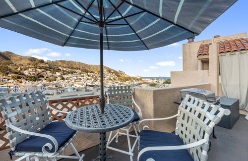 This top level condo has been transformed into a colorful, contemporary, fun place to stay. The large balcony, which can be accessed from both the living room and the bedroom, is furnished with lounge seating and a raised height dining table to enjoy the panorama. This condo features a large flat panel TV, DVD player and i-Pod dock stereo. In addition to the Cal king bed in the bedroom, there is a fold-out queen size sofa bed in the living area. The bedroom has a sliding privacy partition for when the fold out bed is in use. This vacation home also offers wireless internet access, a propane BBQ and a fully equipped kitchen. A total of 749 square feet. C58 | | Occupants subject to Bahia Vista Condo Owners Association Rules and Regulations. | | | This vacation home rents on a nightly basis (2 night minimum, holidays and selected dates excepted; 3 night minimum mid-June through Labor Day). ----- This property is in a residential community and is only suitable for quieter groups. NO smoking, NO parties/events. NO pets allowed per HOA rules. You must be 25+ years old to rent this property. No daytime visitors allowed. Please make sure you are comfortable with these policies before booking. Violations of these rules will result in immediate eviction with no refunds. Property Management provided by Catalina Island Vacation Rentals.