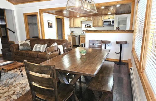 This recently remodeled cabin has 2 spacious and comfortable bedrooms with King beds. The Master bedroom features a large walk-in closet and an en-suite bathroom. On the other side of the room is a comfortable daybed that also has a trundle. Use this to keep the kiddos close while sleeping! This room also has a desk and chair for working and a large mounted HD TV.