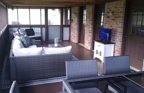 The interior is as tranquil as the exterior. This recently remodeled cabin maintains country living with modern amenities. Three large living areas give larger families room to spread out. Whether you are watching a movie in the family/game room or watching the game on the screened-in porch, there is plenty of room to kick back and prop your feet up. Bedroom #1 is easily assessable just off the living area with a beautifully redone tile bath with laundry access. Bedroom #2 is a large loft with private bath containing a clawfoot tub/shower. Equipped with hi speed internet you have the ability to stay in contact with the modern world if you so choose. YouTube TV is provided, and the 3 HD smart TVs allow you to stream from your favorite streaming platforms. Enjoy the large yard and feed the horses if they come close. The fire pit makes for an enjoyable evening in the Fall or Spring and plenty of firewood is kept on the premises. Cummins Falls State Park is within 6 miles of the Cabin if you are looking for hiking trails and more outdoor adventures.