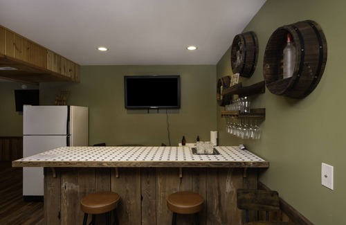 Cabin in the Sky is just that; a hidden stay tucked in the mountain scape of the Blue Ridge. Private parking leads you straight to our front entrance, lit brightly by several automatic night lights. As you open the door with your personal code, you're placed in the middle of the 3-story Cabin. Ahead of you: an eat-in kitchen with coffee nook, a stocked kitchen, and full fridge/freezer. To your left: a full dining area, suited for 16; prefect for family-style dinner and games! Living room with 2 sleeping sofas and plenty of room for activities. To your right: coat hangers, the in-unit laundry and 1st floor restroom. *REMINDER* please remove all shoes at the door. In the basement: a boutique gaming and lounge area with day bar, full suite of arcade and tabletop games as-well as our bunkroom for up to 6 people. As you're lead upstairs you'll find our favorite spot: the loft! This is our area for some quiet; nestle into the sofa with a book or work on your computer while enjoying a wide open view of the range. The two upstairs bedrooms are perfect for parents with young children. Private bathroom, pack-and-play, and separate sleeping quarters can give you some space from the festivities!