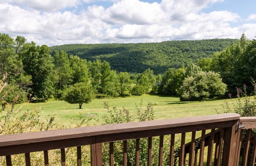 A great escape awaits you on 12 acres of private land. If you prefer a relaxing vacation or if you want to get involved in local activities (hiking, biking, swimming, skiing, snowshoeing, sledding), this is your place. Enjoy 360 degree views of the Catskill Mountains from almost anywhere on the property. Sip your morning coffee while watching the sunrise on the large deck. Play in the large private yard. Clear evenings are the best for sunsets, a fire pit and star gazing.