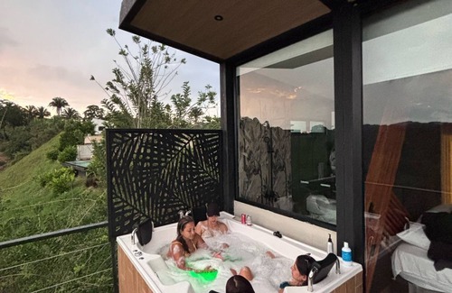 Nestled in La Tebaida, this 1-bedroom, 1-bathroom cabin brings it all within your reach. Fans of nature and the outdoors will love being 67 minutes by car from Main Square and 40 minutes from Parque De La Vida. With convenient onsite parking, you'll be ready to make the 36-minute drive to Coffee Park or the 25-minute drive to Armenia Country Club.
