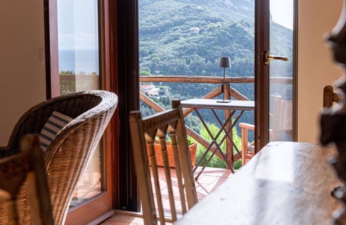 5-room semi-detached house 150 m2 on 3 levels. Fully renovated in 2021, comfortable and stylish furnishings: living room with panoramic window with dining table and TV. Exit to the terrace. Living room. Exit to the terrace. Open kitchen (oven, dishwasher, 4 gas rings, toaster, kettle, microwave, electric coffee machine). Exit to the terrace. On the lower ground floor: 1 double bedroom with shower/WC. Exit to the terrace. (exterior staircase), 1 double bedroom with shower/bidet/WC. Exit to the garden. Upper floor: 1 large double bedroom. Exit to the terrace. Shower/bidet/WC. Air-conditioning, forced-air heating. Large terrace. Terrace furniture, barbecue, deck chairs. Marvellous view of the sea. Facilities: washing machine, mosquito net, hair dryer. Internet (WiFi, free). Please note: non-smokers only. Private entrance, smoke alarm, no lift. No internal connecting door between the separated properties. Furniture personally curated by the owner of the house, the paintings and sculptures are from a private collection from the family-owned Art Gallery, the lighting has been carefully designed with designer lamps (Flos Artemide Fontana Arte) contrasting with brocantage furniture and natural fabrics. IT053016C27OTRDAAM