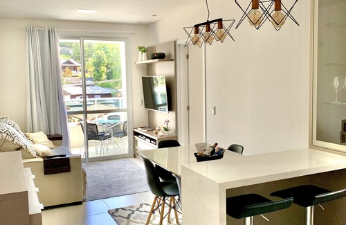 🔳 Living / Dining Room equipped with a table for 5 people together with a bar-style bench for 2 more people. Comfortable extendable sofa, SmarTV 50 ”with Netflix, YouTube, Playstation 3, HD NET Channels, JBL Extreme and 35MB Wi-Fi.