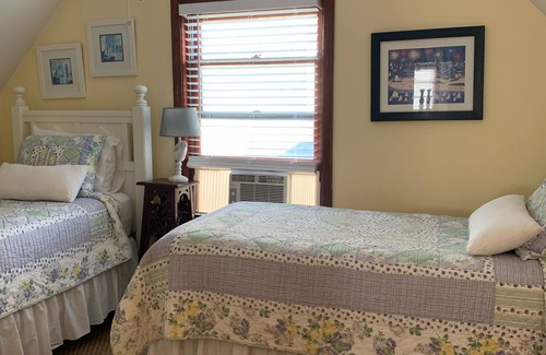 This two story Cape Cod style home has lots of windows and sunlight and a bright, cheery decor. The back porch is a beautiful private oasis with an outdoor shower, an outdoor dining table and chaise lounge- all secluded by a privet and hydrangeas, roses, and perennials. On the first floor is a kitchen that includes everything you'll need if you choose to cook and an extensive directory of the wonderful local restaurants for Nantucket dining at its finest. There is a washer & dryer, 2 bedrooms and 1 bathroom on the first floor. Upstairs you'll find 2 more bedrooms and 1 bathroom with shower. There is no central AC but window units will be provided for the bedrooms in the summer. There is a large, private grassy back yard with a deck.