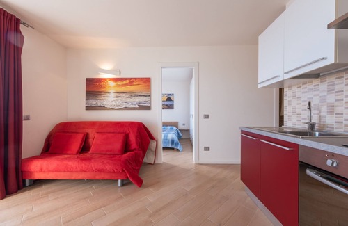 The three-room apartment, finely furnished, offers an amazing view of Lake Iseo and Montisola, and consists of a living area with kitchen complete with all appliances, table with chairs and sofa.