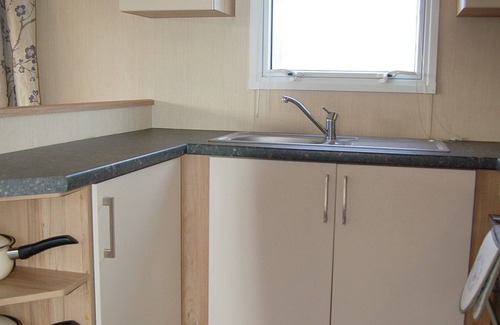 This stunning modern caravan has a large open plan living room, including dining area and a lovely kitchen arrangement.