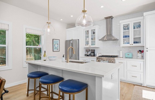 This newly and fully renovated cottage is tucked away in a quiet neighborhood, but close to everything Main Street has to offer. The home features high end features and finish outs throughout. The open concept living and kitchen area is an entertainer's delight with plenty of space and a gourmet kitchen complete with a chef's gas range. The two bedroom, two bathroom cottage offers plenty of personal space for couples traveling together. End your day in the Hill Country by relaxing by the outdoor firepit with a glass of wine or dining al fresco in the backyard. The Cardinal Haus has everything you need for the perfect getaway in Fredericksburg.