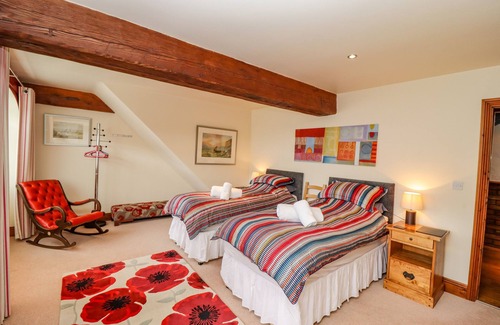 Awarded the top accoldate of 5 Star Gold from Visit England/Quality in Tourism, there are three gorgeous bedrooms to the ground floor - a large double, a twin bedroom with a fabulous en-suite shower room with wet-room area, WC and had wash basin, plus a second double bedroom. A cot and high chair can be made available for the use of guests but can this please be requested at the time of booking. Guests are requested to provide their own cot linens. The house bathroom is gorgeous – large, beautifully done with a stunning free-standing bath and is ideal to relax with a glass of champagne or a cup of tea, whatever your preference! – good-size shower, WC, bidet and hand wash basin.