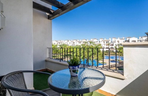 Fab South facing 2 bedroom apartment on La Torre, a short 5 minute walk to the main town centre where all restaurants and bars are located. Also a very short walk to both the spar supermarket on resort and the golf course entrance. The accommodation is equipped with the following: lift access, garden furniture, terrace, washing machine, iron, internet (Wi-Fi), hair dryer, children's area, tennis/paddle court, central heating, air conditioning throughout the house, communal swimming pools, garage space and parking on site , TV/Satellite TV (Languages: Spanish, English, German, French).In the kitchen, refrigerator, microwave, oven, freezer, dishes/cutlery, kitchen utensils, coffee machine, toaster and kettle are provided.With 16 communal pools and plenty of restaurants, this resort is perfect for everyone! The resort itself is a thriving golf and holiday resort with good facilities including bars, restaurants, supermarket etc, and has 24/7 patrolled security providing a safe and relaxed environment for the whole family.We are Murcia Holiday Rentals, and we look after 180+ properties here providing a first class service to our guests and owners. Every year hundreds of owners and thousands of holiday makers trust us to deliver a great experience, regardless of which booking channel or tour operator they booked through. We have an office inside the resort itself where we are on hand to deal with any queries and assist with everything from charging your phone to printing tickets and providing recommendations. We are rated as "excellent" on Trustpilot and are preferred partners to all the major channels.Our guests staying at La Torre also have the added benefit of our fully staffed office at the resort, where you can get assistance, advice and recommendations, as well as help with any aspect of your travel or accommodations. Our staff speak Spanish, English, French and Arabic.