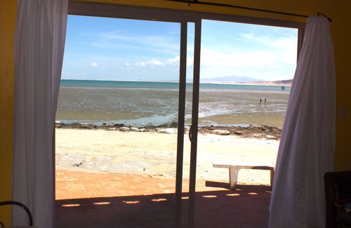 Two story Casa Arco Iris resides right on the water in Cholla Bay, just beyond Rocky Point. A real Mexican beach house, Casa Arco Iris is full of color, warm tile work, and windows with views of the ever changing waters of the bay just outside.