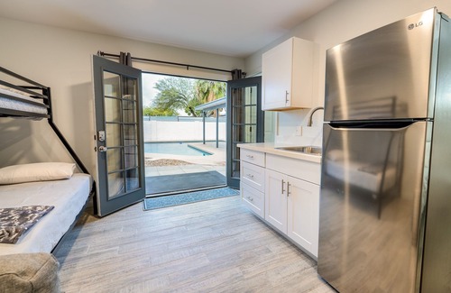 With an amazing north Tempe location near ASU, Mill Avenue, Old With a great north Tempe location near ASU, Mill Avenue, Old Town Scottsdale, Phoenix, and Sky Harbor Airport, this beautifully remodeled and contemporary home features a main house with three spacious bedrooms along with a large Casita with extra beds and a full bathroom. Top that off with a refreshing (and heated) pool, your group will absolutely love this home!