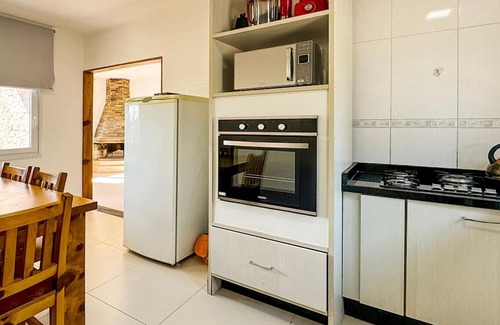 Casa completa no Centro de Gramado. A Casa possui 03 andares amplos, com vaga de garagem em condomínio fechado. A casa possui 02 suítes com camas de casais e 01 quarto com colchão de casal e sofá cama de casal que ao todo comportam 08 hóspedes. A cozinha possui todos os utensílios e eletrodomésticos, necessários para que possam ter uma estadia completa. Por fim uma sala com uma lareira com sofá e televisão.