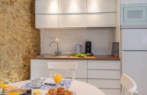 You will find two comfortable bedrooms. One of them stands out for its natural stone ceiling and double bed, adding a rustic and original touch. The other bedroom, bright and comfortable, offers the ideal rest after a day exploring the region. The contemporary and elegant bathroom features a large shower and stone details that enhance its style.