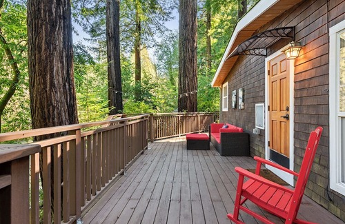 Perched above the tranquil waters of Austin Creek, Casa de Flores offers a picturesque creekside retreat amidst the towering redwoods of Sonoma County. Relax and slow down. Step inside to discover a cozy living space with comfortable furnishings and spacious kitchen complete with a gas range - perfect for preparing delicious meals.