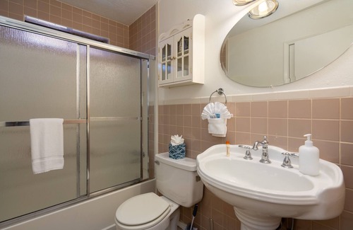 If getting a good night's sleep is your priority, the three bedrooms will ft your needs. The primary suite offers a king-sized bed in a spacious room with a wall-mounted flat-screen TV (with cable).