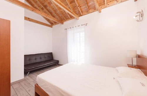 The comfortable sun terrace offers a scenic view of the surrounding area and the sea. The green area is ideal for hiking and sightseeing while enjoying the tranquil ambiance.