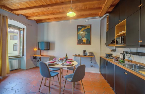 The apartment is in a central location with all the amenities and sites of Riva del Garda on your doorstep. Guests can immerse themselves in the local culture, visit historic landmarks such as the Apponale Tower (4 minute walk), and browse through quaint boutiques and artisanal shops. The lakefront is just a 2-minute walk away. The Lungolago walk offers wonderful views out over Lake Garda.