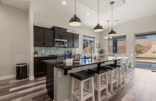 Relax and enjoy your stay in this centrally located, pristine and newly built Mesquite casa. The backyard offers a pool, spa, and a bistro dining height table. With luxury everything, vacations are upgraded to first class. As Mesquite is centrally located, you have a short drive to some of the finest state and federal parks in the world. You have quick access to golf courses, a casino’s, hiking, biking & razor adventure. Spoil yourself with a vacation in Casa Mesquite.