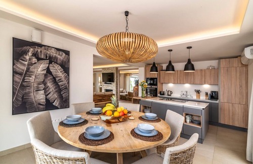 - Fully equipped modern kitchen with breakfast bar, dining for 6 people, microwave, cooking basics, dishwasher, oven , kettle, expresso machine, toaster, belnder and access to the terrace