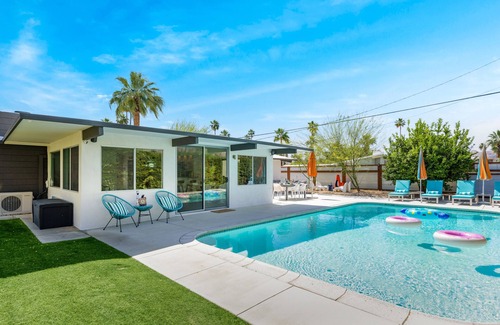 Casa Mila - Vibrant & Charming Mid-Mod Retreat w Amazing Pool/Spa & EV Charger has 3 Bedrooms , 2 Bathrooms, and max occupancy of 6 people. The minimum rental for this property is 1 nights, but this can change depending on the season you plan on staying. Previous guests have given good rated it, and VRBO labeled it a top-rated House because of the excellent services rendered by the owner or manager of this House, and has consistently provided great experiences for their guests. Most families or guests that use it recommend it to their friends and some of them are repeat guests. House has a friendly neighborhood, and the Palm Springs has interesting places to visit. If you want to learn more about the House in Palm Springs, such as places to visit and things to do nearby, you can check below to learn more.