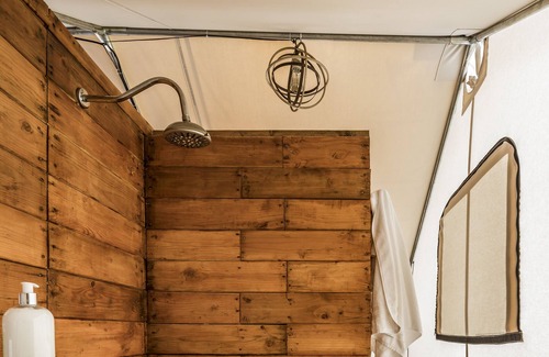 On a 5 acre stretch of land with breathtaking views of the mountains with large boulders across our land that creates a beautiful natural landscape. We offer the complete glamping experience with comfort in nature. Exclusivity and privacy. Our facilities have only 6 rooms each with its own space and an endemic garden separated one from the other. Complete hotel comfort, king bed, memory pillows, private baths, hot water, water pressure, soft water system, bathrobes, amenities such as shampoo, conditioner, liquid soap, skin cream, hairdryer, steam iron for clothes, electricity, USB connectors, air conditioning with heater, mini bar, coffee maker, satellite WiFi, among others. Optional breakfast for an additional fee. (Request on the reservation or during check-in.