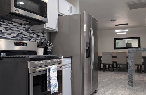 Make yourself at home in this beautiful 4-bedroom Las Cruces retreat. This house comes equipped with a phenomenal pool, AC, a washing machine, WiFi, and more for your convenience. With 2 bathrooms and plenty of space, you'll have everything you need for a comfortable stay. Perfect location near restaurants, mall, university, movie theater and much more.