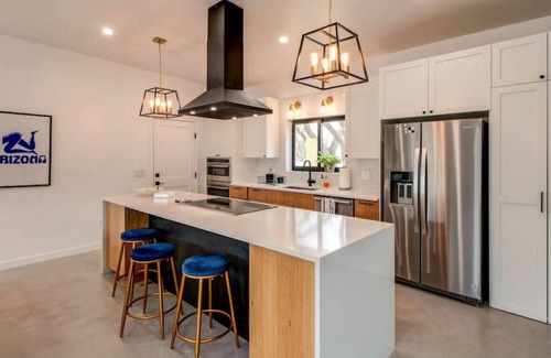 Gorgeous Foothills home, perfect for couples, families, & groups of friends. The main part of the home has 3 bedrooms and the Casita is a full Studio Suite with a full bath, kitchenette, Queen size bed and spacious seating area. Perfect for privacy. If you only need the main house, the casita is perfect for hanging during pool days! There is ample parking, including a garage which hosts a small gym.