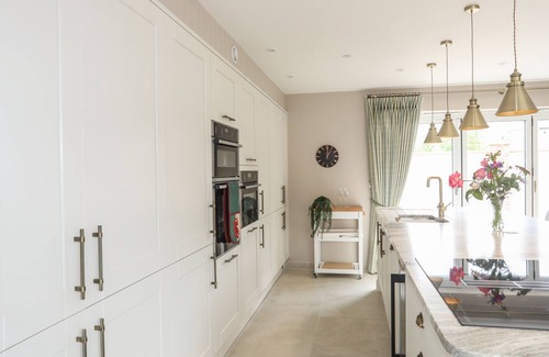 This home has an open-pan kitchen, dining area and sitting area with an electric double oven and hob, microwave, fridge/freezer, washer/dryer, dishwasher and a Smart TV, and a snug with Smart TV. The bedrooms consist of a king-size with free-standing bath and en-suite, a ground-floor double, a further double, and a twin, serviced by a ground-floor bathroom and a shower room. Outside there is an enclosed rear garden with patio, artificial lawn, furniture and hot tub, a private driveway, and an EV charging point. WiFi, fuel, power, bed linen and towels are all included in the price, along with a highchair and travel cot. You'll find a shop and a pub in 0.2 miles, and River Elwy in 0.6 miles. This is a pet-free and smoke-free home. For a stylish base in Denbighshire, book Cascon. Note: Check-in from 4pm, check-out by 10am.
