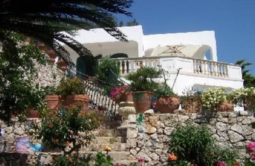 (Text automatically translated) Splendid villa located in prime location, 300 mt. From the square in Castromarina 100 mt. From the beach "La Source", a central but on a rocky promontory from which dominates the town of Castro and the sea front. Exceptional view. The building is on two floors: downstairs bedroom with a full bath, bed and kitchen corner, on the upper floor are the living room, the dining room, kitchen, large bathroom, a double bedroom, a twin bedroom and extra bed in the dining room. The villa is equipped with all comforts and accessory for an ideal stay, including satellite TV (with SKY), washing machine and air conditioning in the rooms. The house is surrounded by a large park landscaped with flower essences typical of the Salento on the three terraces overlooking and a small pine forest on retro.Nel park there are 2 outdoor showers, one with hot water. The property is available for any needs of guests, the price includes the work of park maintenance and technical support for any immediate repairs carried out by qualified engineers, as well as the bed linen (sheets and towels) and the consumption of water, electricity and gas (first cylinder).