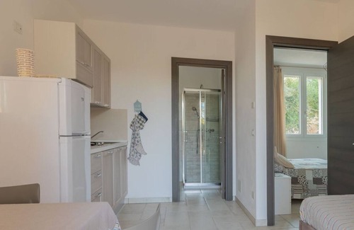 This apartment is located near the pool and consists of equipped veranda, hall with kitchenette and sofa-bed, bathroom with shower, main double bedroom. Equipped with air conditioning, TV, wi-fi, fridge and kitchenette.