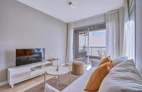 This sophisticated apartment will surprise you. The building is located just steps away from Buenos Aires' most important attractions, such as the Casa Rosada, the Congress, and the Palacio Barolo. It's the perfect choice for your next trip. The unit enjoys plenty of natural light and is tastefully decorated with a minimalist design, suitable for both short and long stays. The apartment features a Queen-size bed in the bedroom, a spacious living area with a Smart TV, and a fully equipped kitchen-dining area.