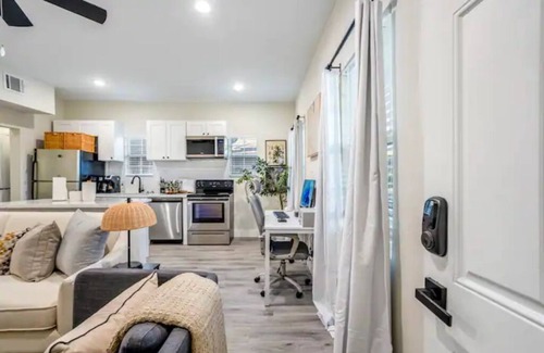 Welcome to this fully remodeled gem in the heart of Houston's EaDo (East Downtown) area. This space is perfect for a solo traveler, business traveler, small group of friends, or anyone with a unique quiet space to stay. Our attention to detail, simplicity, and finishes makes for an ideal modern living space. Smart, dimmable lights in each room. Also, a fully operating computer with Windows 11, and Microsoft Office will make sure you can keep up with work during your stay.