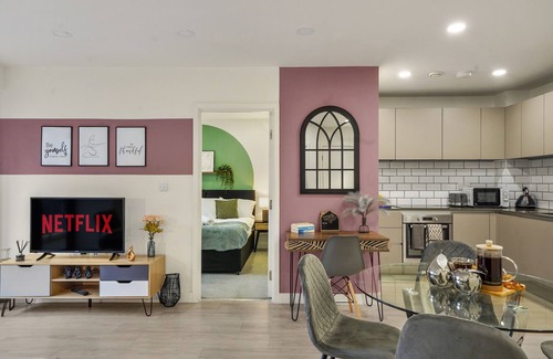 Enjoy a stylish stay at this modern 2-bedroom, 2-bathroom ground-floor apartment in the heart of Bedford — perfect for business travellers, contractors, or leisure stays.