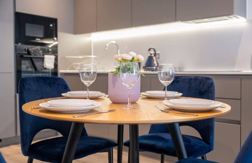 Central: Luxurious Chique Two Bedroom Apartment is located in Salford. Central: Luxurious Chique Two Bedroom Apartment provides accommodation, featuring TV, Wheelchair Accessible, Balcony/Terrace, among other amenities. This Apartment features TV, Wheelchair Accessible, Balcony/Terrace, to make your stay a comfortable one.