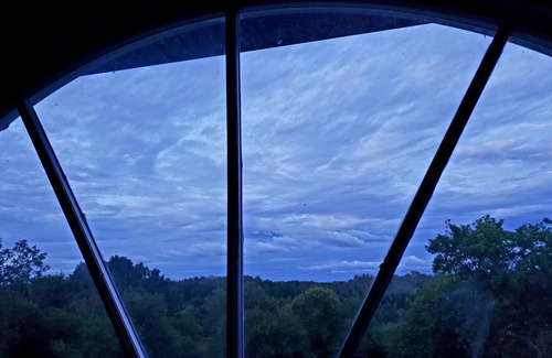A much more modern addition, the second and third floor apartment located to the northeast of the home, has hand painted countertops displaying a birch forest transitioning through the seasons and a beautiful vintage window overlooking forest and prairie, with gorgeous views of the sunrise and stars. There is also an east-facing balcony located off the common area with seating for two.
