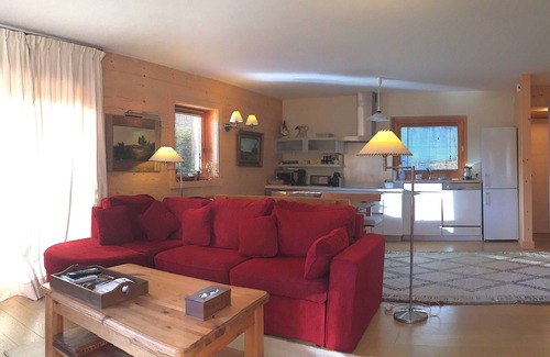 Located less than 5 minutes walk from the center of Megève, and a few hundred meters from the lifts of Jaillet, this chalet has parking in the basement, a bathroom with toilet for guests. In the 2 bathrooms one bath with shower and toilet. fully equipped kitchen, a terrace with garden access, water softener, washer, dryer, large modern fireplace.