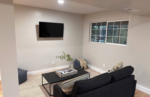 This fully updated, 580sq ft, one bed appt in the heart of the little town of Newcastle, is perfectly located right off highway 80 for easy access to the many surrounding amenities. It is the entire bottom floor of a house with its own private keyed entrance, a private patio, and a private shaded parking spot with ev charging included. Sleeps up to 4 people. It has one bedroom with a queen bed and a full size hide a bed in the living room it also has a full sized washer and dryer and a kitchenette with everything you would need for cooking
