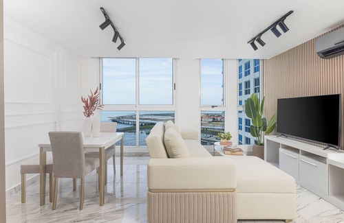 Wake up overlooking the Bay of Panama / Coastal City in this 1 bedroom with 2 full bathrooms and capacity for 4. Perfect for business trips or couple/family getaways: double bed in the bedroom and sofa bed in the living room. Equipped kitchen and washing center inside the apartment for comfortable (and long) stays. Swimming pool, gym, rooftop, restaurants and the famous The Point, the highest Zip line in Panama City